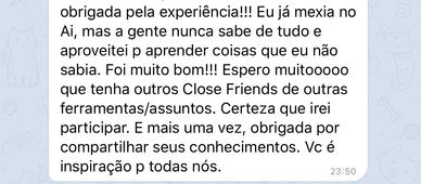 Um grupo para todos os alunos! para você tirar qualquer dúvida, o grupo sem mantém e você vai criar relações maravilhosas com os outros participantes!